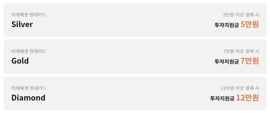 - 미래에셋 현대카드 Silver/ Gold/ Diamond 소지 회원 전체 대상