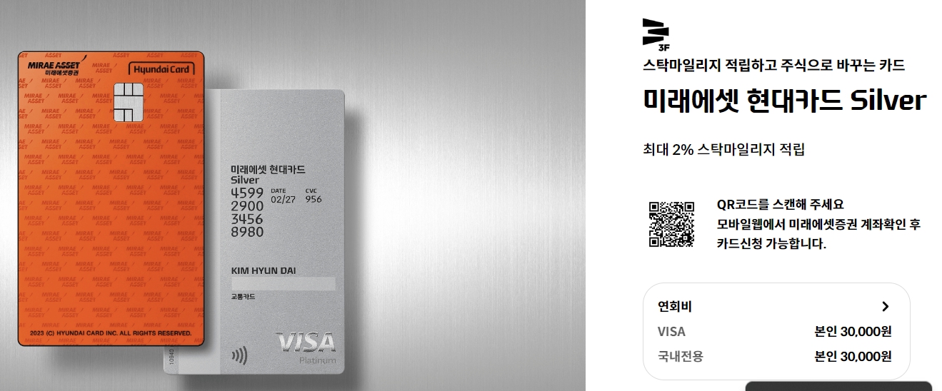 최근 미래에셋증권과 현대카드가 콜라보한 미래에셋x현대카드를 이용하면 결제할 때마다 적립 받는 스탁마일리지로 미래에셋증권에서 주식투자가 가능합니다.